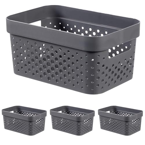 CURVER Infinity Tray 4.5 L Dots Recycled Plastic Pink Crates, anthracite grey, S (Pack of 4)