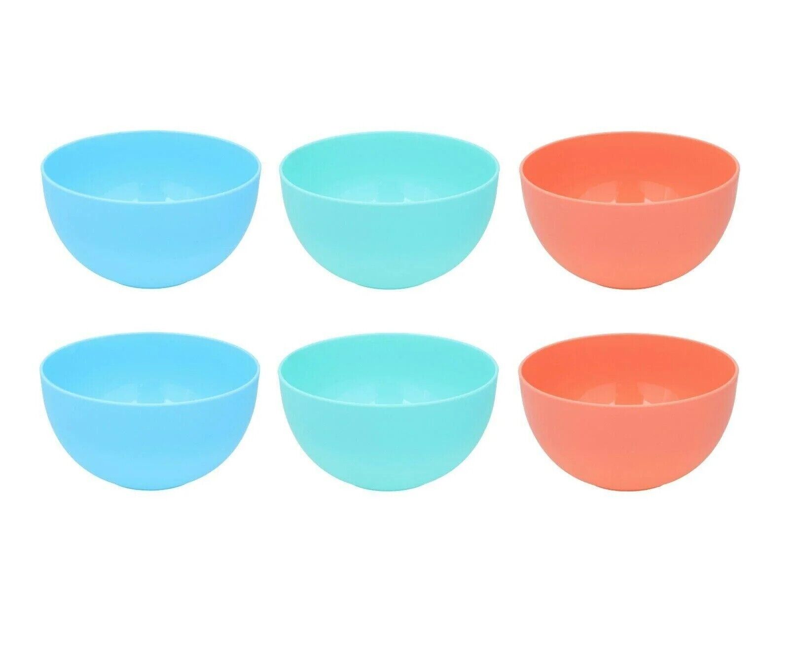 Set Of 6 Plastic Cereal Bowls Breakfast Stackable Dessert Snack Soup Bowls