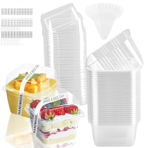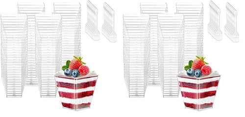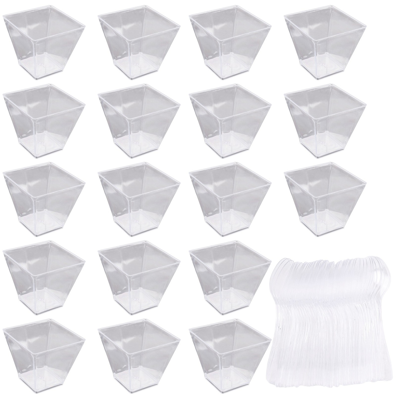 Yibaijia 50 Pcs Dessert Cups, Dessert Bowls, Reusable Plastic Square Cheesecake