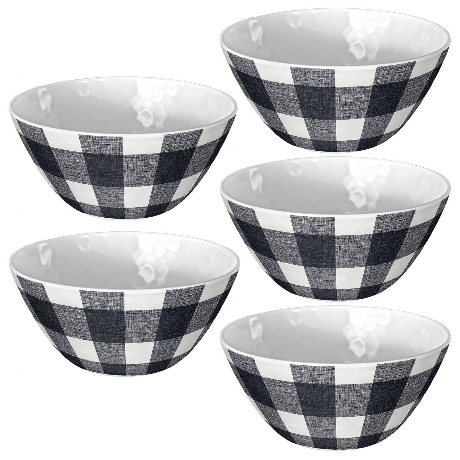 Vintage Black Check Melamine/Plastic Cereal/Soup/Dessert Bowls - Set of 5 Bowls
