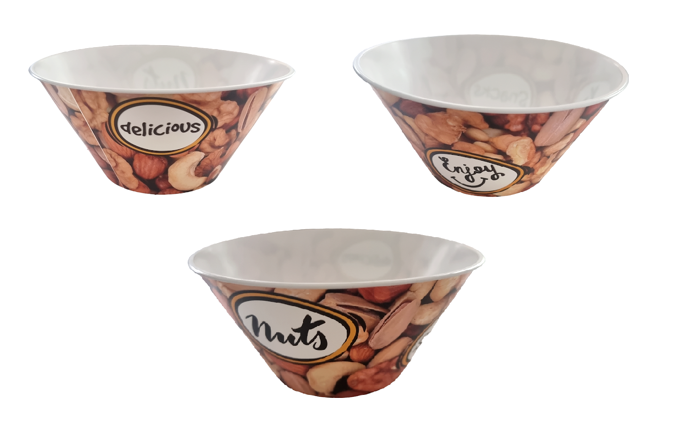 3 X Plastic Snack Bowls Three Serving Dessert Side Dish Nut Nibbles 16cm X 7cm
