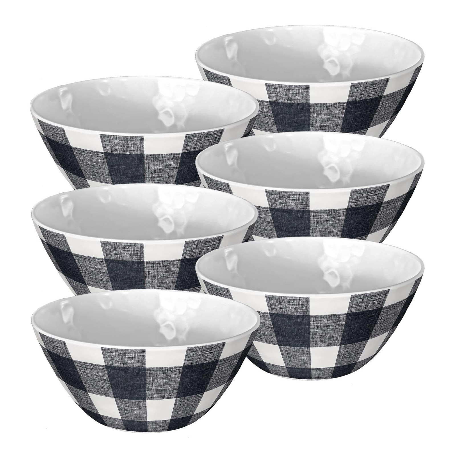 Vintage Black Check Melamine/Plastic Cereal/Soup/Dessert Bowls - Set of 6 Bowls