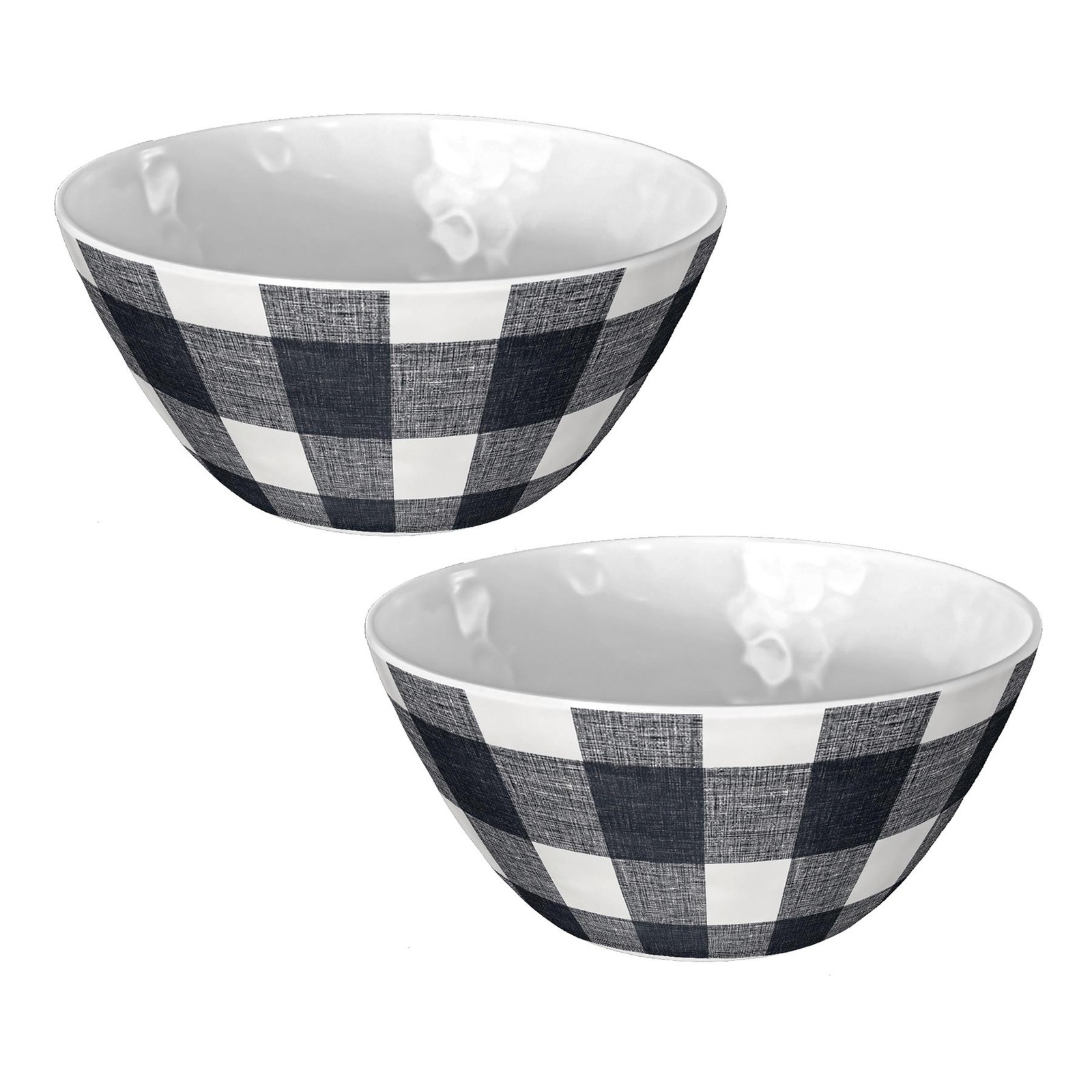 Vintage Black Check Melamine/Plastic Cereal/Soup/Dessert Bowls - Set of 2 Bowls