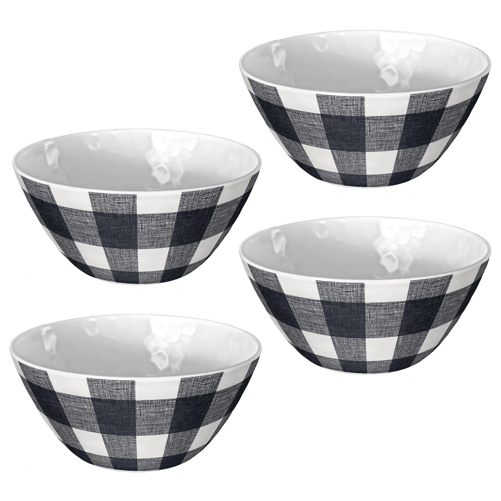 Vintage Black Check Melamine/Plastic Cereal/Soup/Dessert Bowls - Set of 4 Bowls
