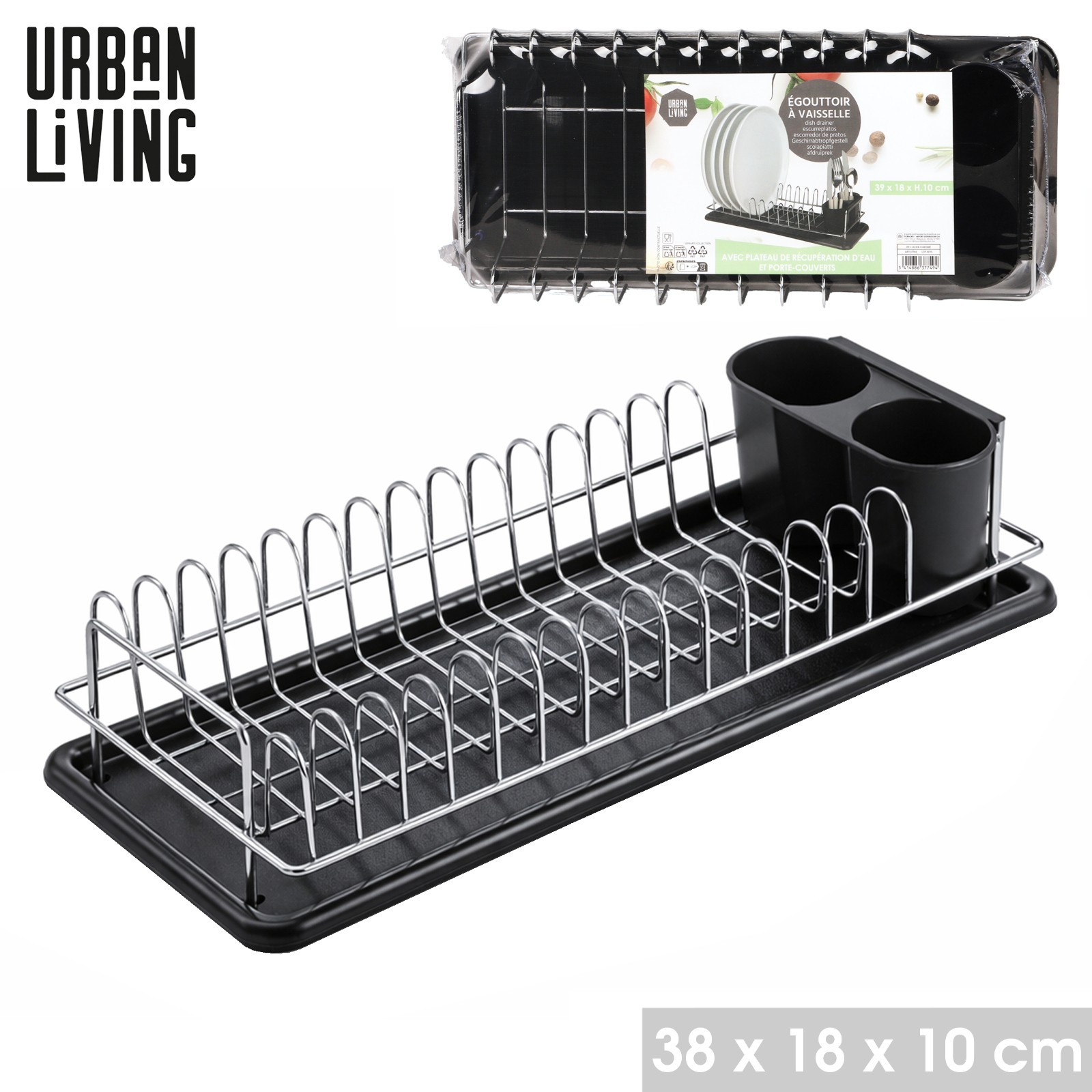 Plastic & Metal Dish Drainer Rack with Drip Tray 38x18x10cm Kitchen Sink Black