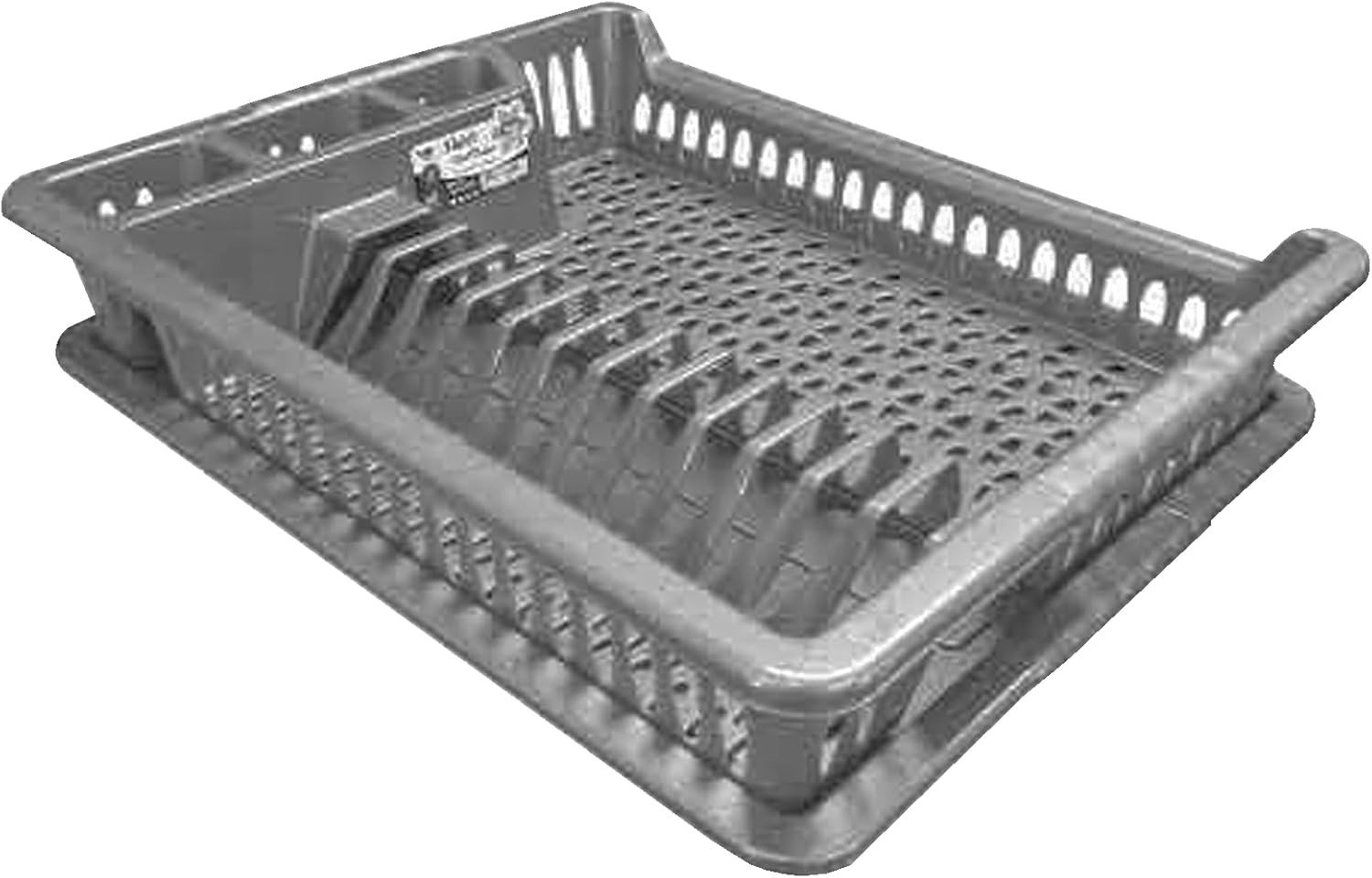 Large Plastic Dish Drainer Plate Cutlery Rack with Drip Tray (Silver)