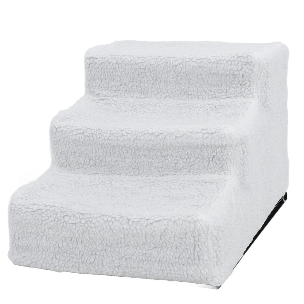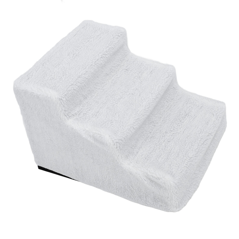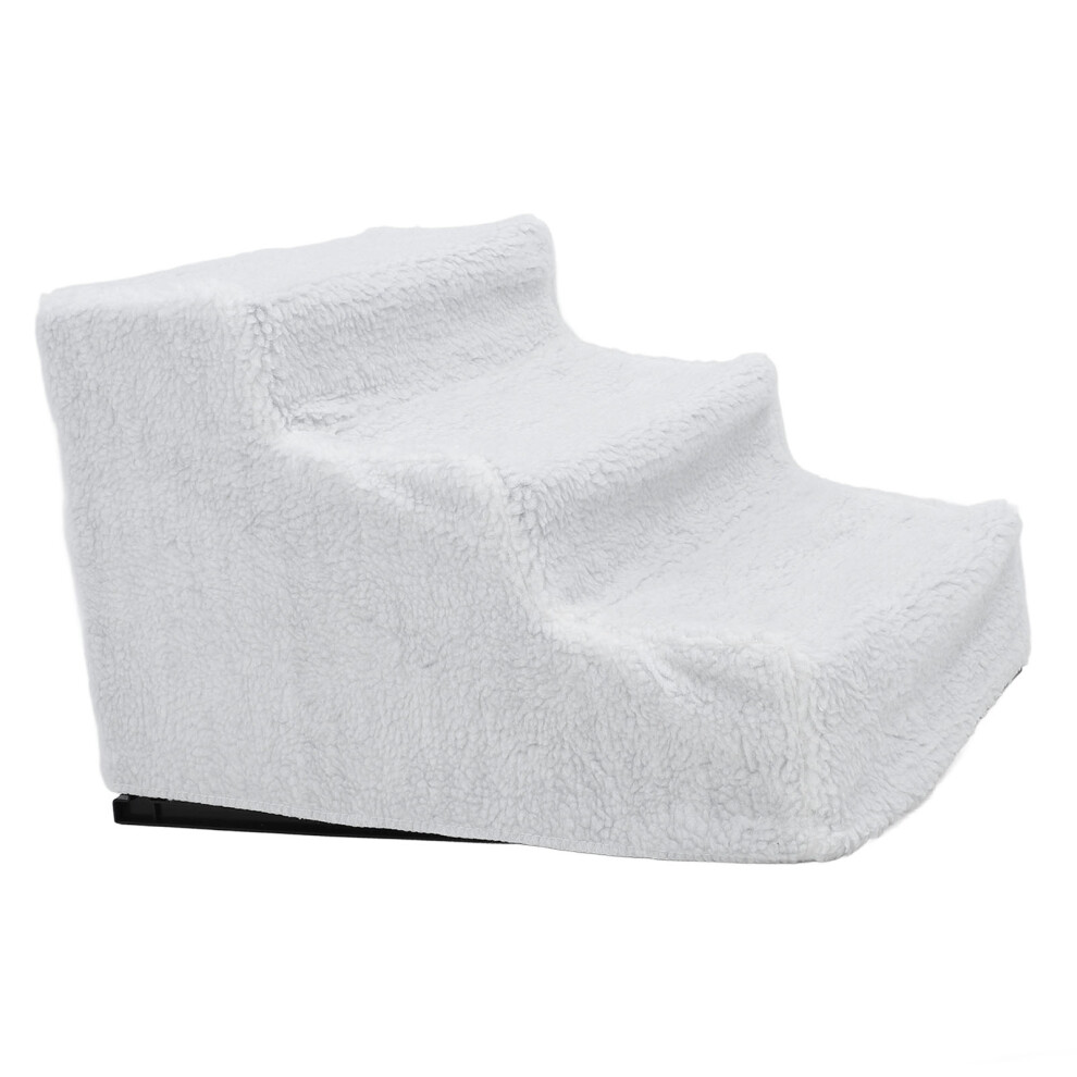 Plastic Dog Ramp with Fleece Surface, Slip-Proof Steps for Bed & Sofa White