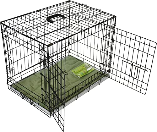 BUNNY BUSINESS UNDERDOG Metal Dog Crate/Cage – Pet Black Metal Folding Cage with 2 Doors Sliding Chew Resistant Plastic Base Tray with Bed Heavy Duty Puppy Training Solution (48" XX-LGE, Black)