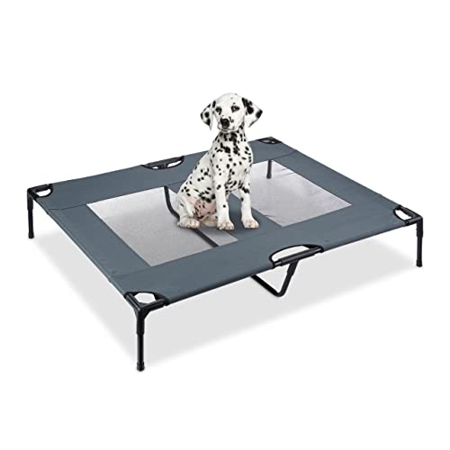 Relaxdays Raised Dog Bed 20 x 122 x 91 cm up to 45 kg Metal and Plastic Grey, 40% steel, Gray, 20x122x91 cm
