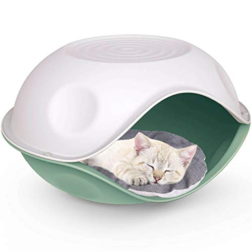 CAT CENTRE Green Outdoor Strong Plastic Pet Dog Cat Feline Canine Bed House Kennel Crate Basket Enclosure Furniture Play Sleep Pen Weatherproof Comfortable Durable Sturdy Safe