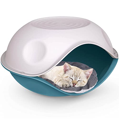 CAT CENTRE Blue Outdoor Strong Plastic Pet Dog Cat Feline Canine Bed House Kennel Crate Basket Enclosure Furniture Play Sleep Pen Weatherproof Comfortable Durable Sturdy Safe