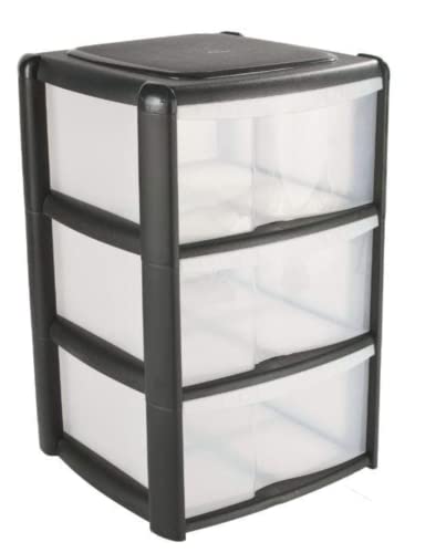 3 Drawer Plastic Storage Tower Unit, Black & Clear - Tontarelli