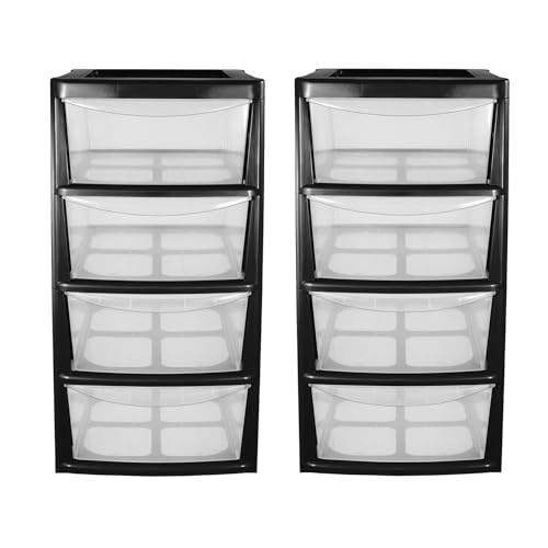 Large 4 Drawer Plastic Storage Tower Unit Ideal for Tools, Toys, Stationary, Documents & Clothes - Storage Unit with Drawers, Plastic Storage Drawers, Black Drawers with Black Frame -39cm x 39cmx 80cm
