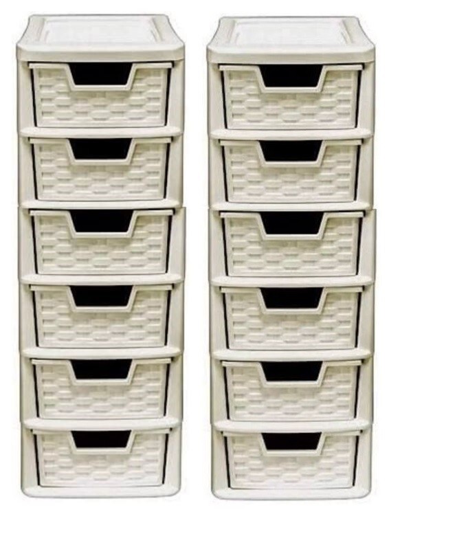 2 x 6 Tier Mini Drawer Plastic Storage Tower Unit Mushroom Design Multi-Purpose