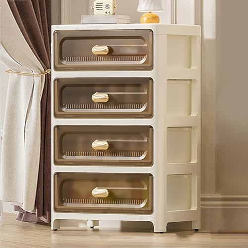 NZBZTUKUWP White Stackable Plastic Drawer Unit With Casters, Multi-tiered Storage Cabinet For Office Or Dormitory Desk Under-desk Organization(Brown,4 Tier)