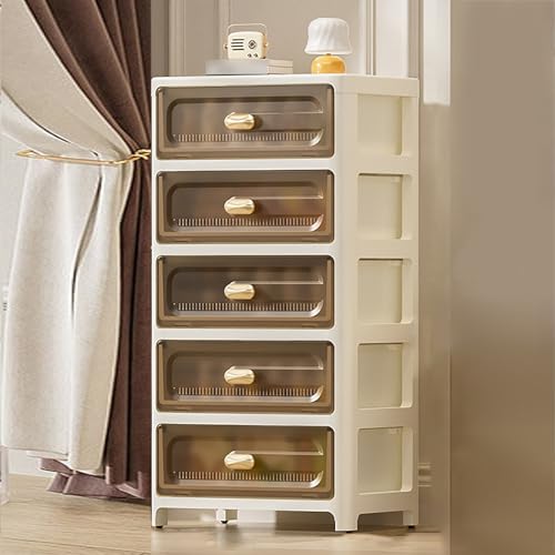 NZBZTUKUWP White Stackable Plastic Drawer Unit With Casters, Multi-tiered Storage Cabinet For Office Or Dormitory Desk Under-desk Organization(Brown,5 Tier)