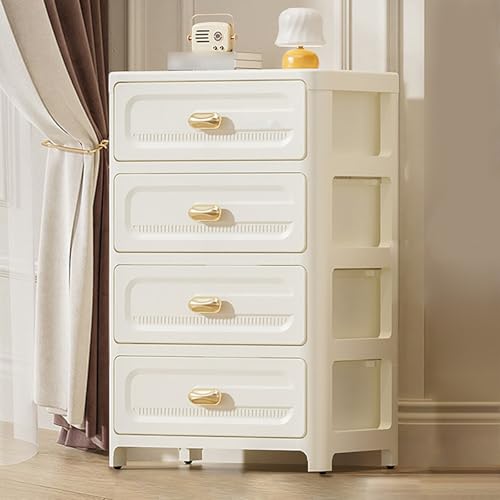 NZBZTUKUWP White Stackable Plastic Drawer Unit With Casters, Multi-tiered Storage Cabinet For Office Or Dormitory Desk Under-desk Organization(White,4 Tier)