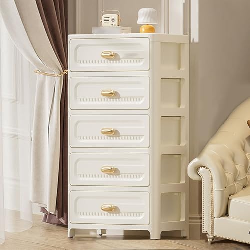 NZBZTUKUWP White Stackable Plastic Drawer Unit With Casters, Multi-tiered Storage Cabinet For Office Or Dormitory Desk Under-desk Organization(White,5 Tier)