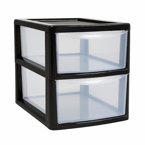SIDSONS - Large Plastic Storage Drawer Unit Tower Organizer Cabinet for Clothes Stationery Art Craft Bedroom Office Bathroom School Holiday Decorations Organizer Chest - (Black/Clear, 2 Tier)