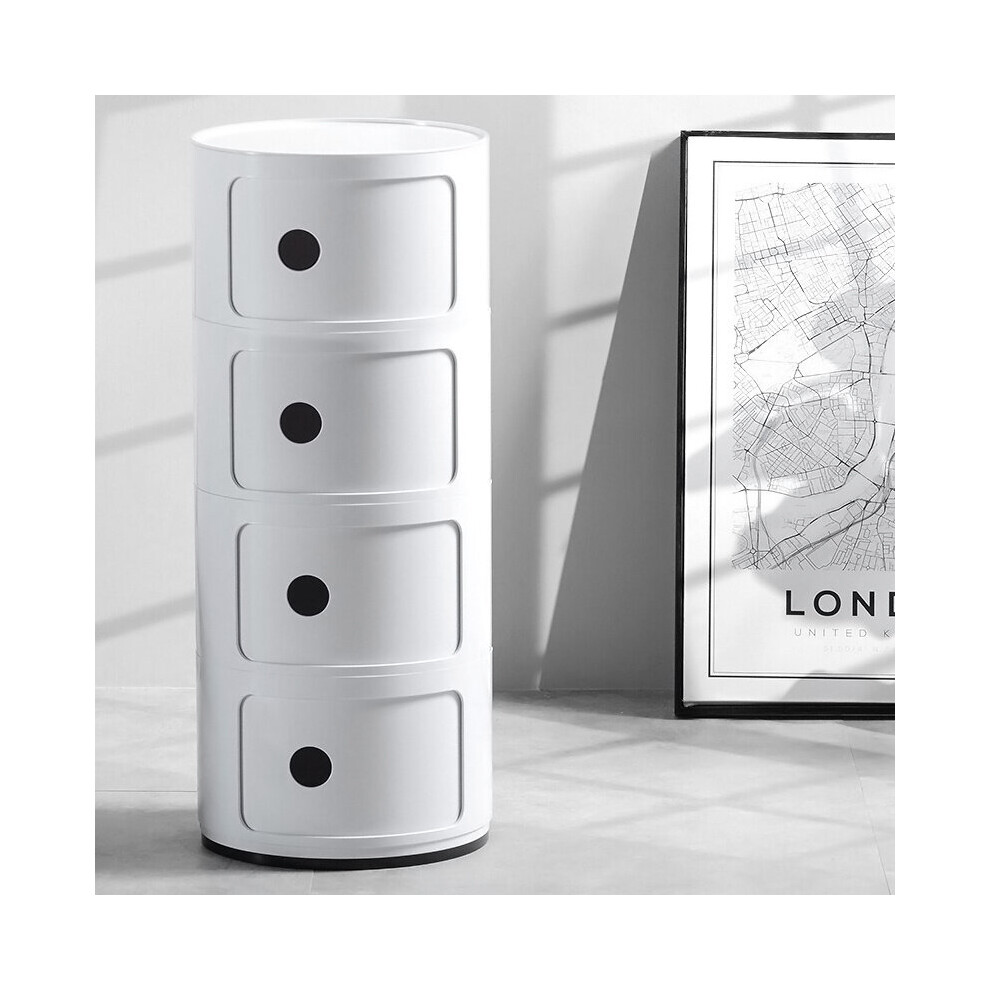 (White) Cylindrical Multi-Tiered Plastic Storage Drawer Unit