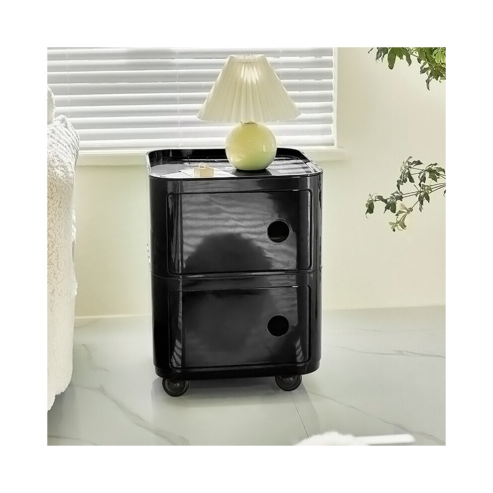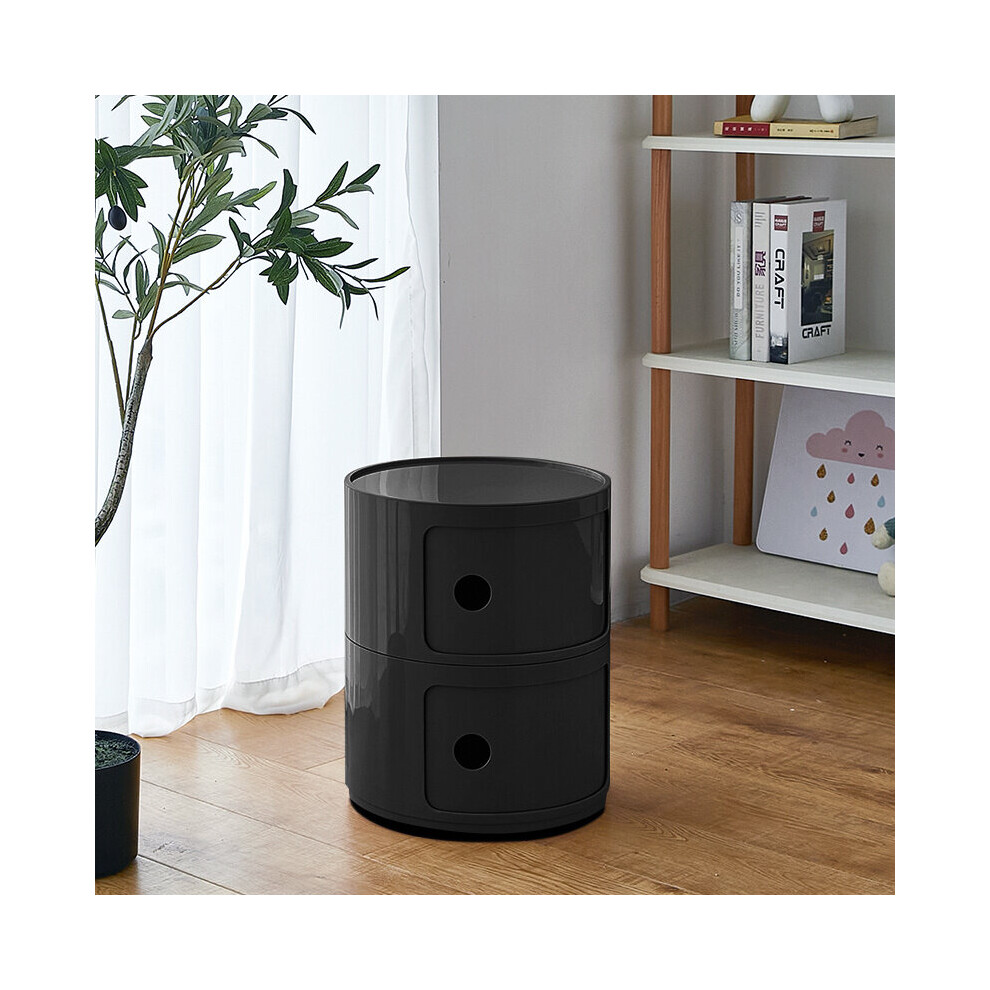 (Black) Cylindrical Multi-Tiered Plastic Storage Drawer Unit