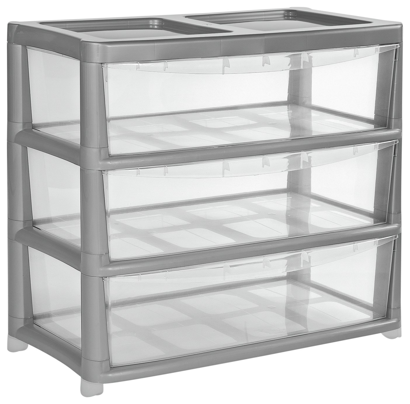 Argos Home 3 Drawer Wide Plastic Storage Drawers - Silver