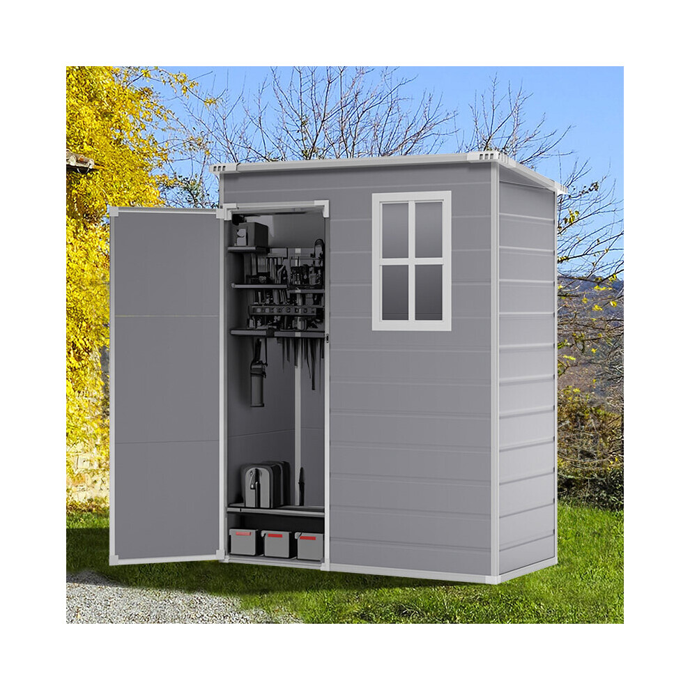 5 x 3 ft Pent Plastic Garden Storage Shed with Floor and Window, Grey