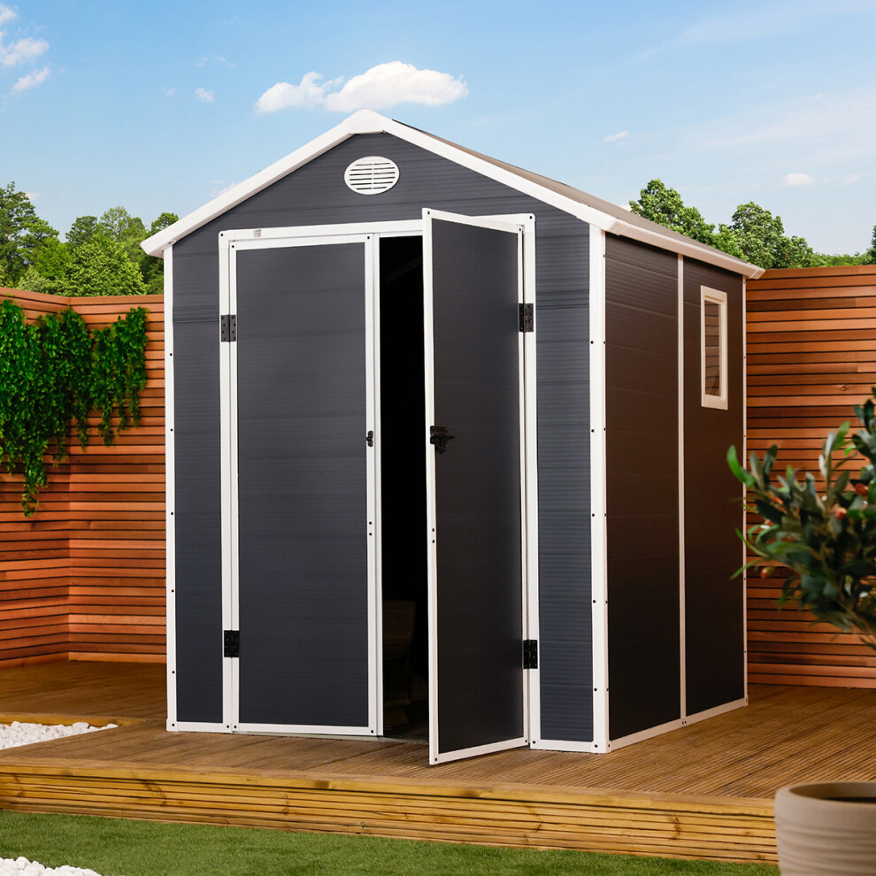 Plastic Storage Garden Shed 6.3ft x 6.2ft Grey Med Roof Outdoor