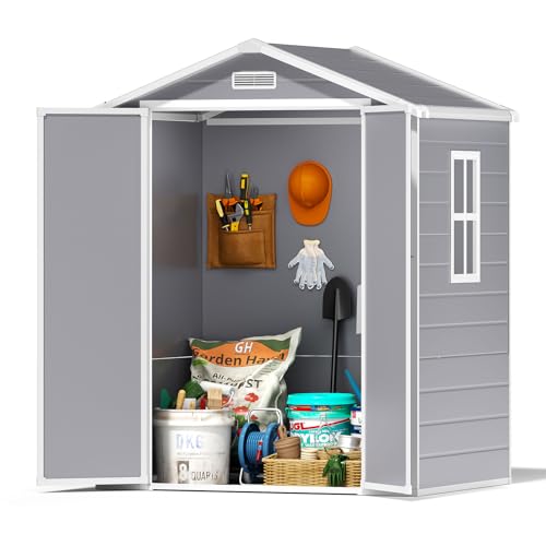 Amopatio Outdoor Resin Storage Shed 6x4.5 FT, Plastic Garden Shed for Bike, Garbage Can, Tool, Outside Sheds & Outdoor Storage Storage Box with Lockable Door for Backyard, Patio, Lawn, Grey & White