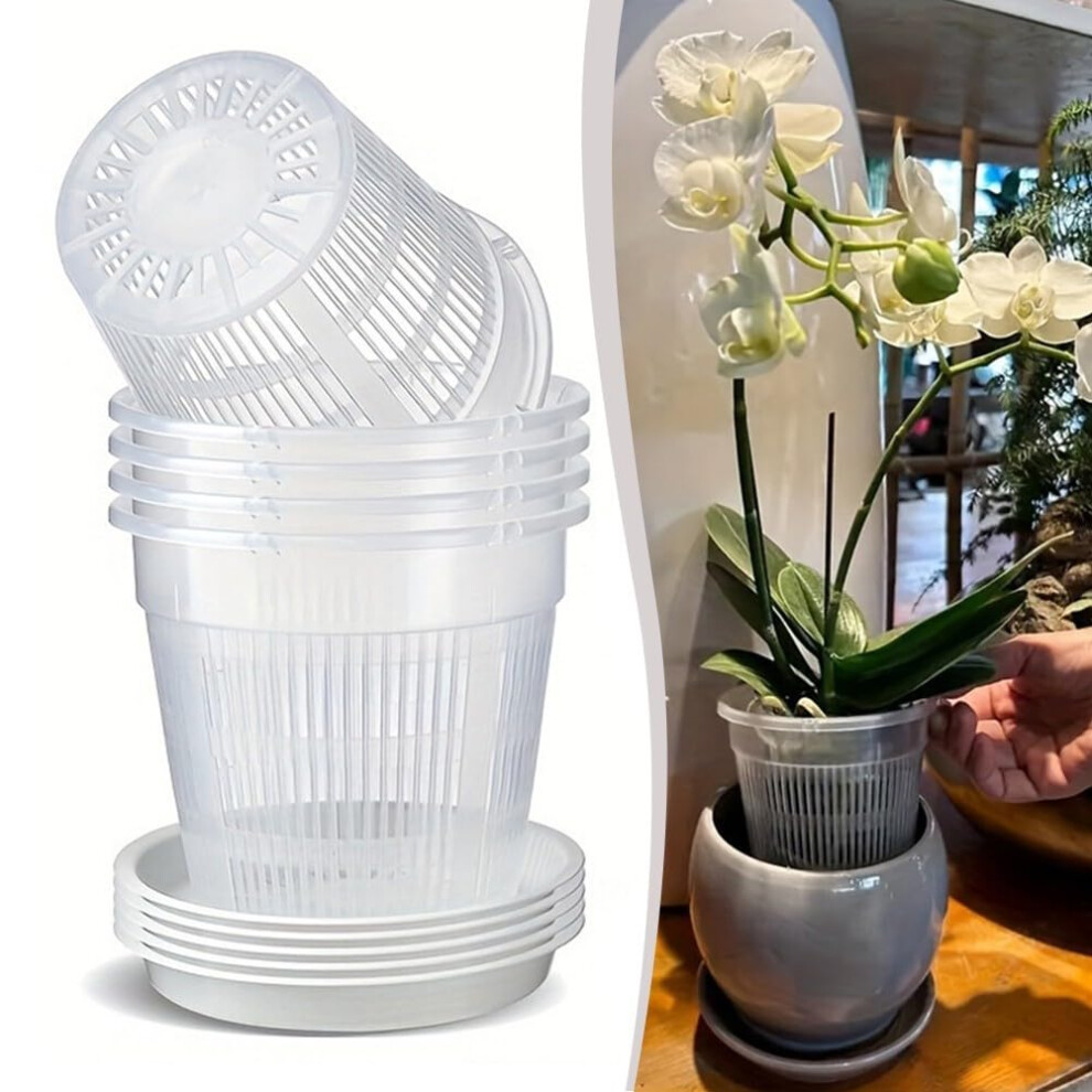 Plastic Orchid Pots 5.5-Inch Transparent 5-Pack Clear Mesh Pots With Holes And Slotted For Gardening