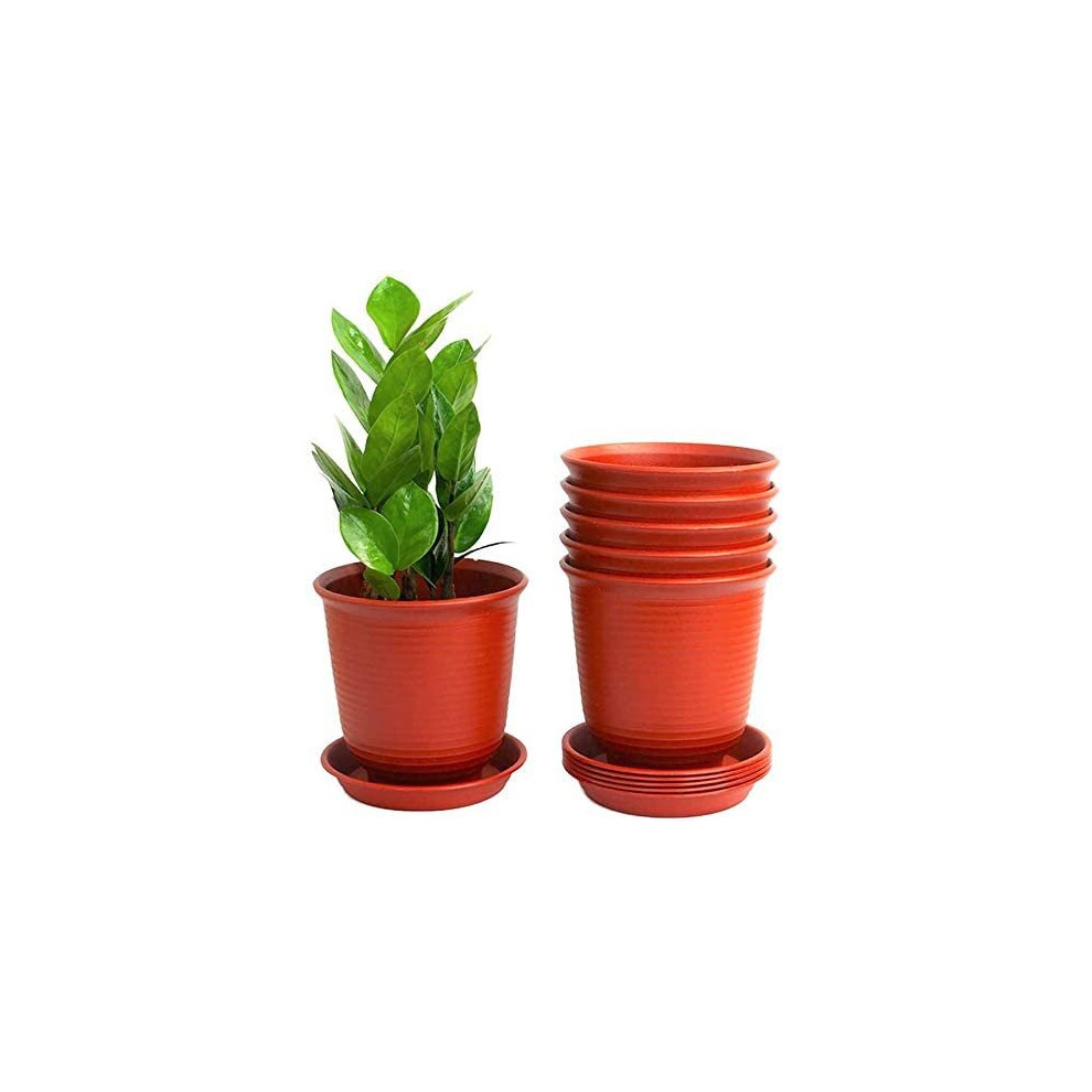KAHEIGN 6Pcs Plastic Flower Pots, 15.5cm Thicken Plant Pots Plant Container Indoor Gardening Pot with Drainage Pallet (Brick red)