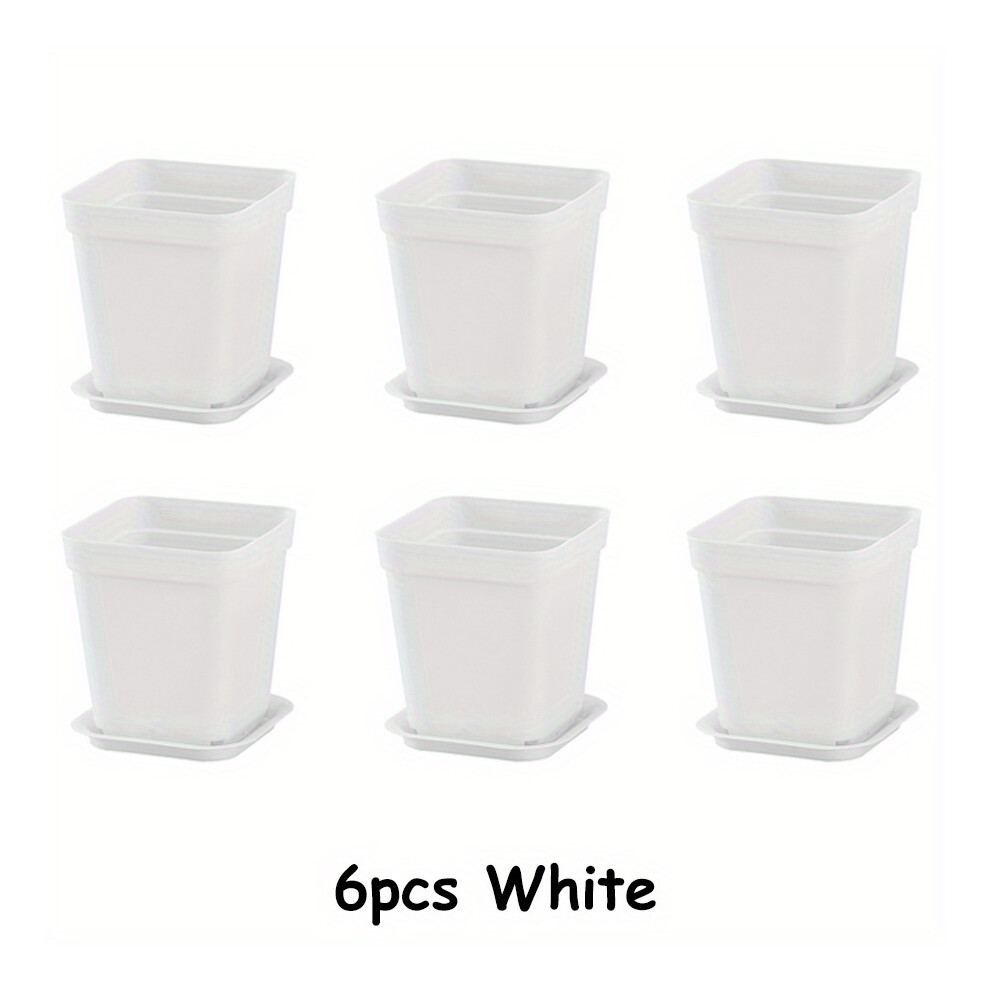 (6pcs White) 6/12pcs 7cm White Plastic Square Flower Plant Pots with Tray Nursery Pot for Succulent Office Desktop Gardening Balcony Decor