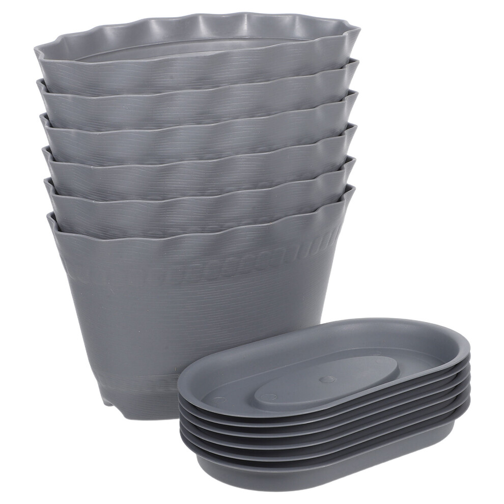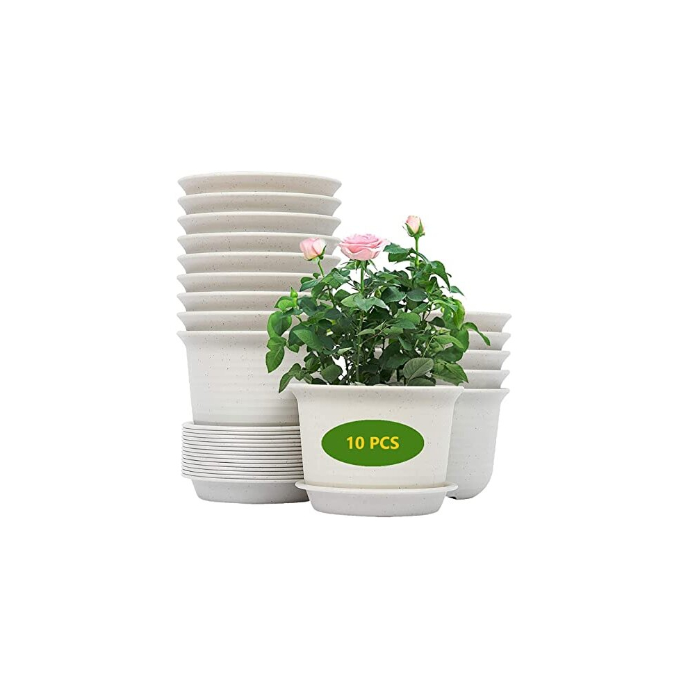 10Pcs Plastic Flower Pots, 15cm Thicken Plant Pots Plant Container Indoor Gardening Pot with Drainage Pallet (White Grey)