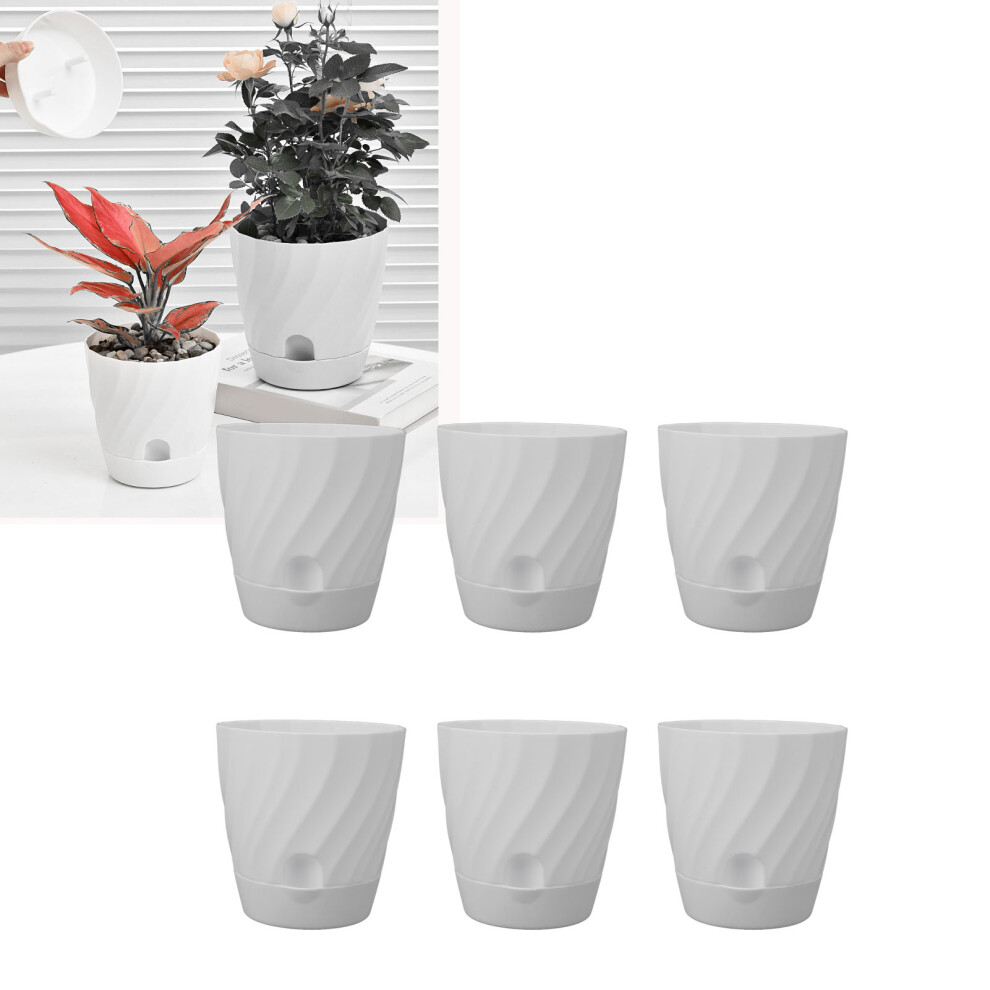 yarlung 6 Pack Self Watering Planter with Water Level Indicator, 5 Inch/12.7cm Plastic Plant Flower Pots Nested Container for Indoor Plants, Herbs, Aloe, Outdoor Gardening
