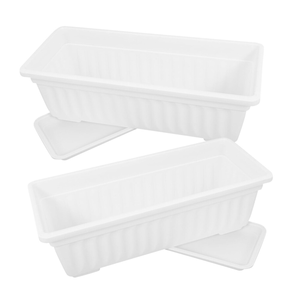Rectangular Plastic Gardening Pots With Trays 2-Pack For Balcony Vegetables Flowers Durable Drainage For Growth