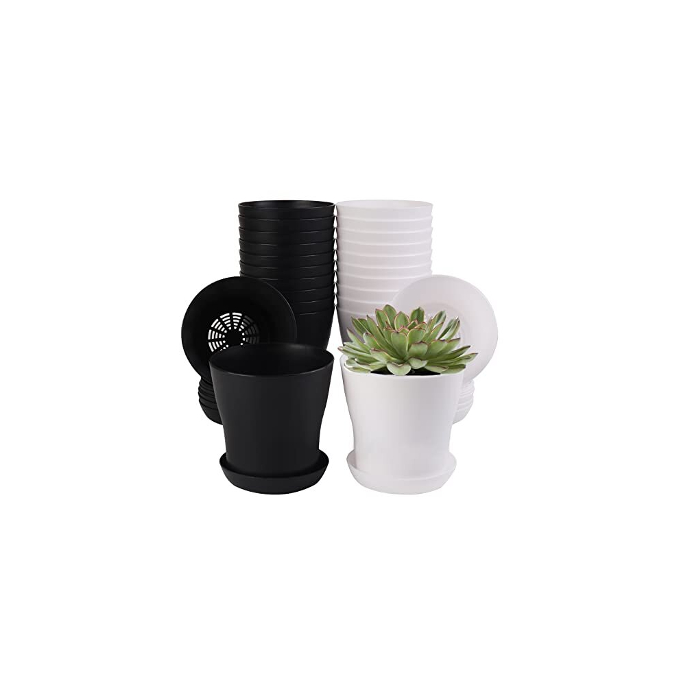 Nursery Pots, 24 Pack 4 Inch Plastic Plant Pot with Saucers, Flower Pots Small Planter for Outdoor Indoor Plants Gardening Containers (Black+White)