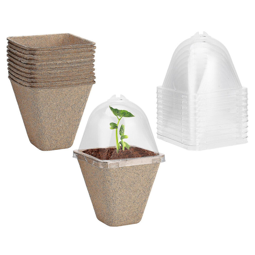 (8cm*square) Seed Starter Pots Seedling Planter With Humidity Dome Transparent Cover Vegetables Pulp+pp Plastic 10 Set Gardening