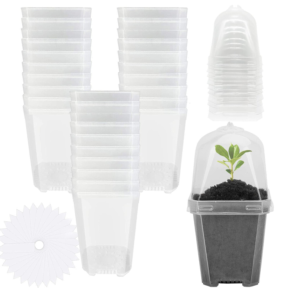 30PCS Clear Plant Nursery Pots with Humidity Dome 3' Plastic Gardening Pot with Labels