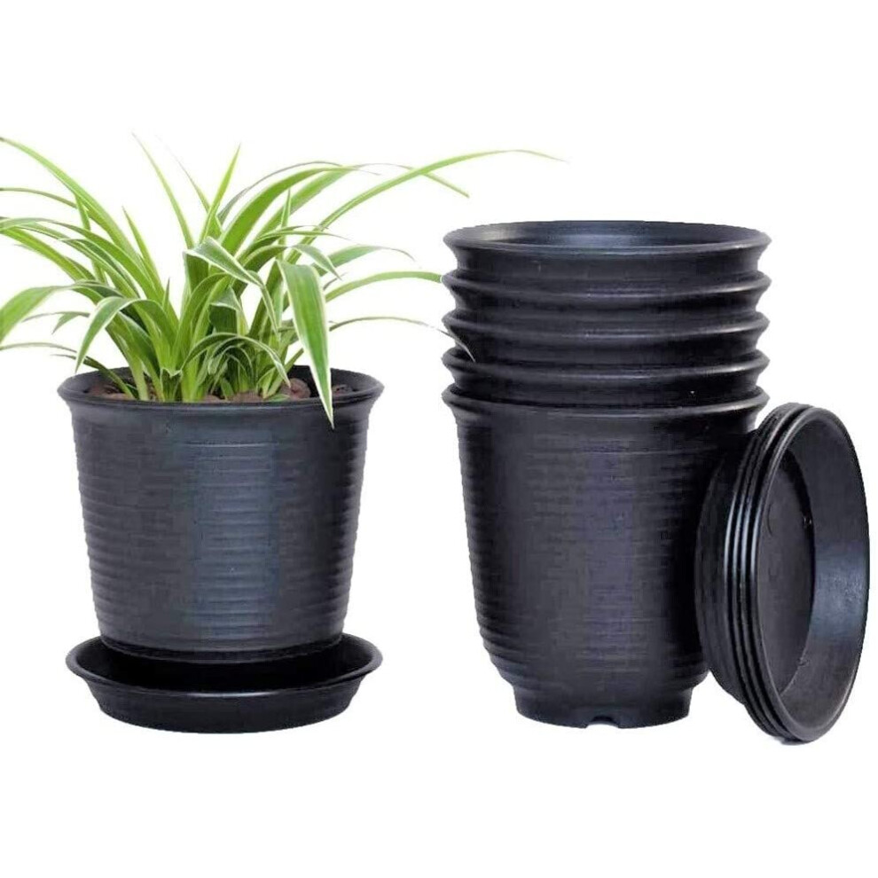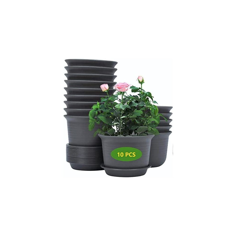 KAHEIGN 10Pcs Plastic Flower Pots, 15cm Thicken Plant Pots Plant Container Indoor Gardening Pot with Drainage Pallet (Black)