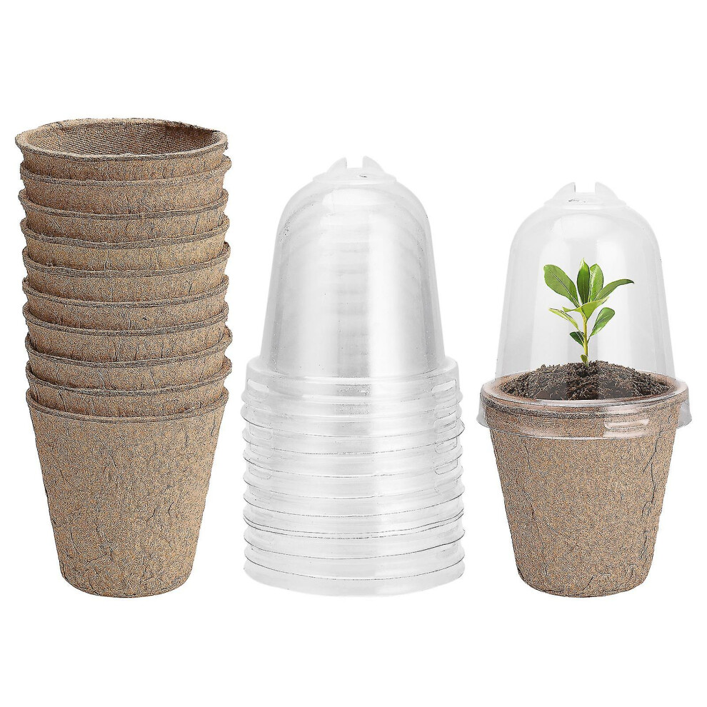 (8cm) Seed Starter Pots Seedling Planter With Humidity Dome Transparent Cover Vegetables Pulp+pp Plastic 10 Set Gardening