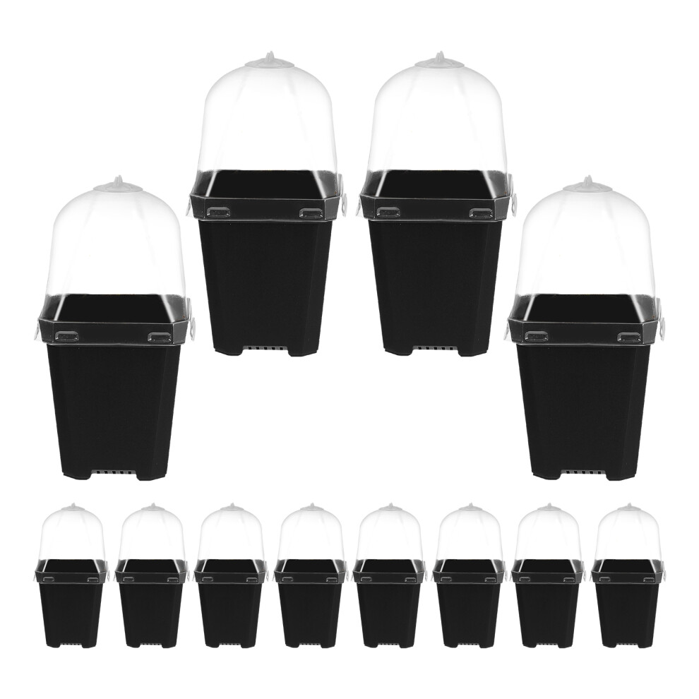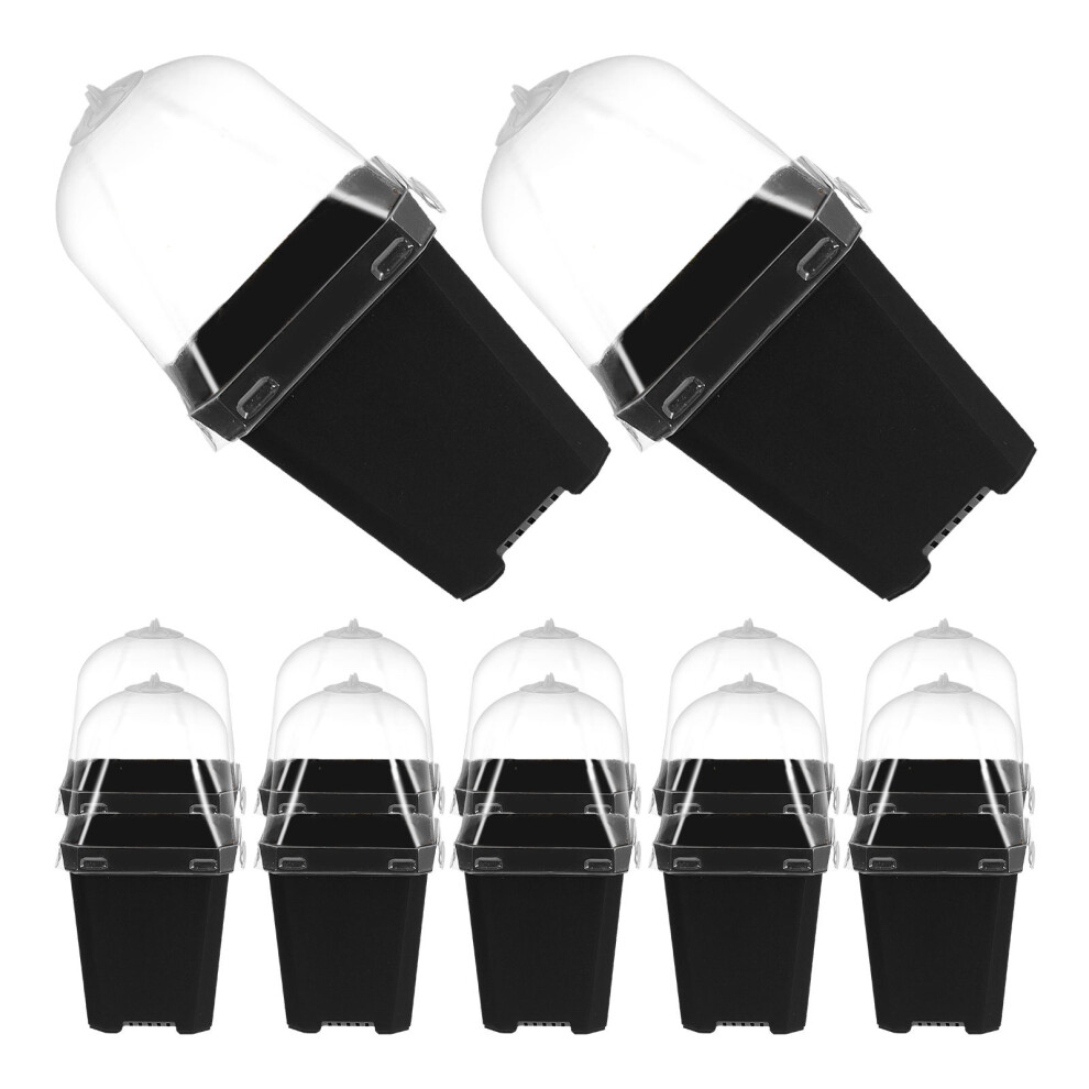 (6cm) Seed Starter Pots Seedling Planter With Humidity Dome Transparent Cover Vegetables Pulp+pp Plastic 10 Set Gardening