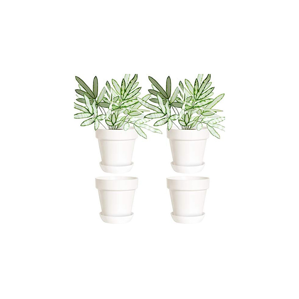 Youngever 7 Pack 11CM Plastic Planters with Saucers, Indoor Flower Plant Pots, Modern Decorative Gardening Pot with Drainage (Classic 7 Sets)