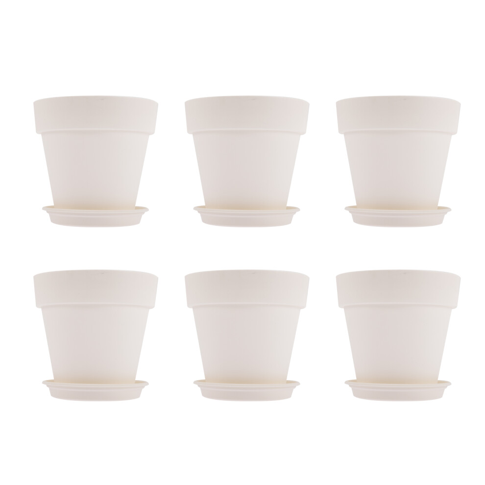 Set of 6 White Plastic Flower Pots for Home & Balcony Gardening
