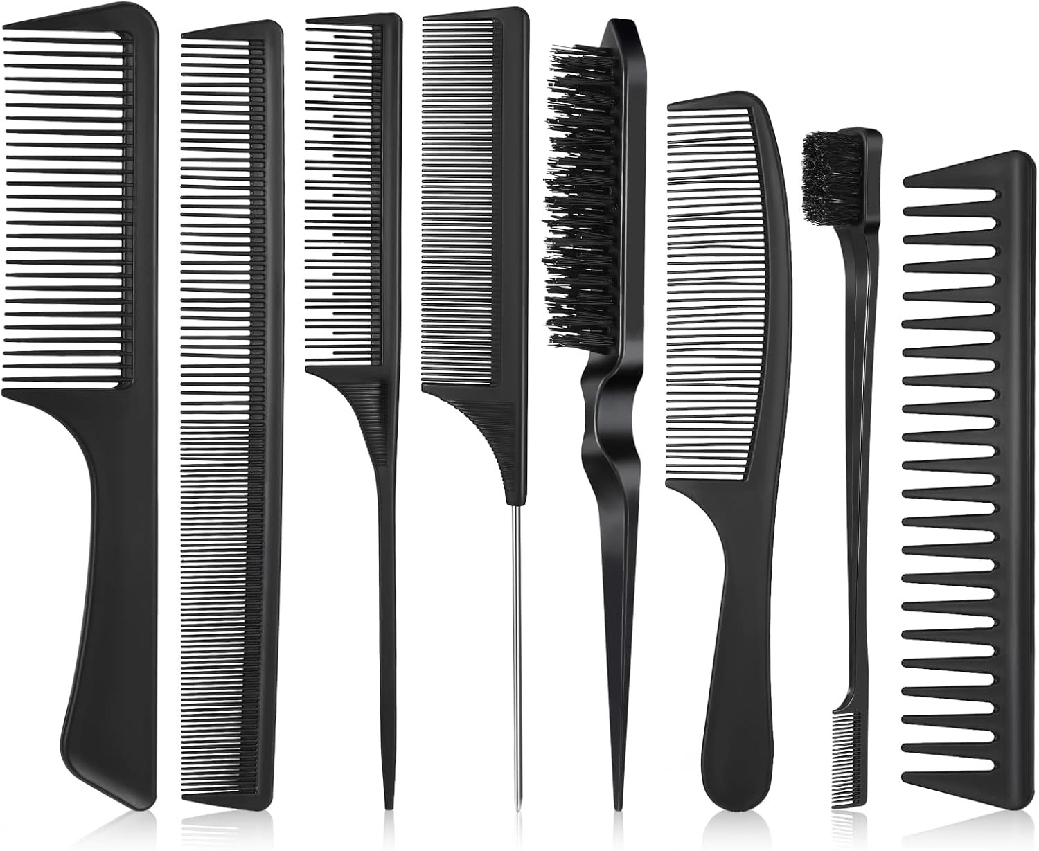 Fuyamp 8 In 1 Slick Brush Set Styling Comb Set, Plastic Bristle Hair Brush Teas