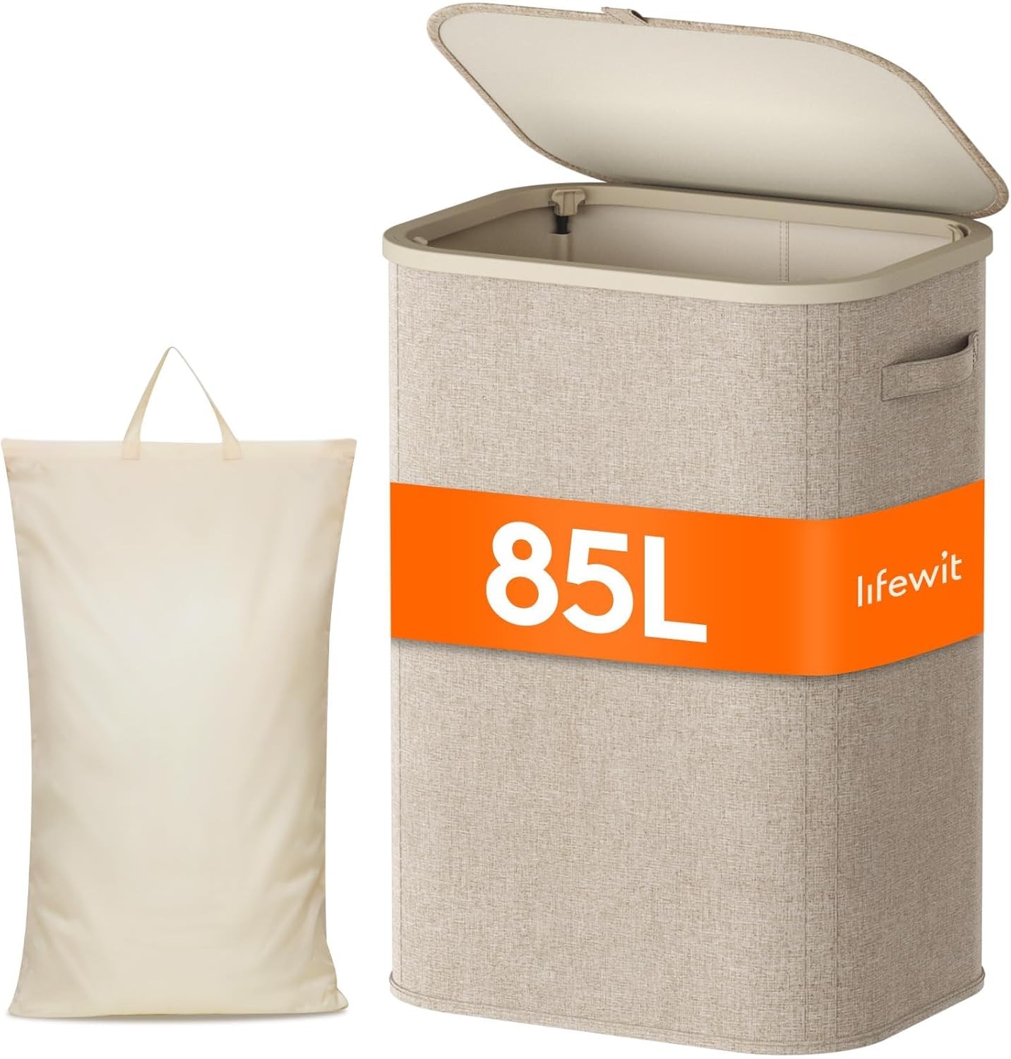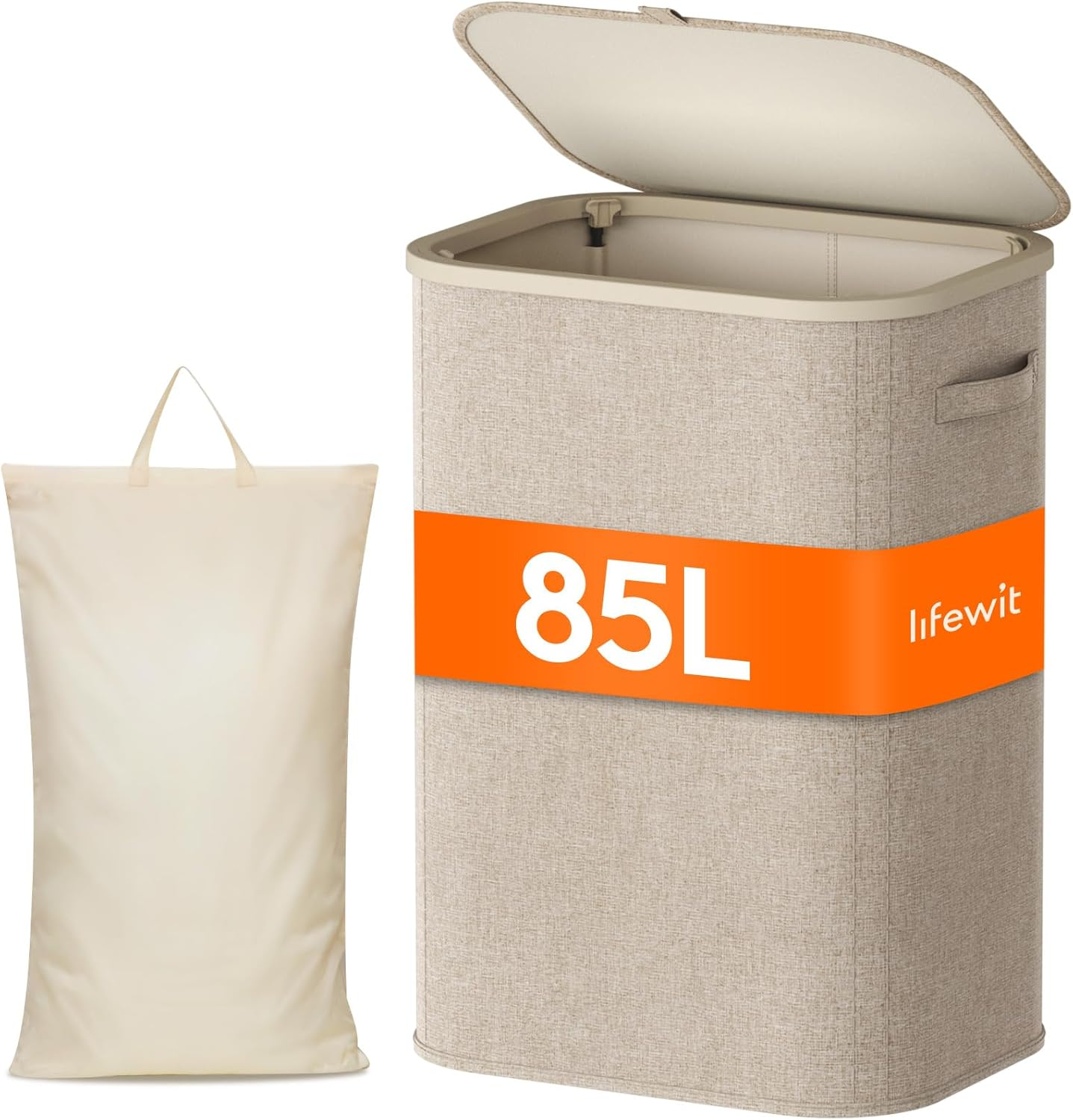 Lifewit 85L Laundry Basket with Lid, Large Laundry Hamper with Plastic Handles