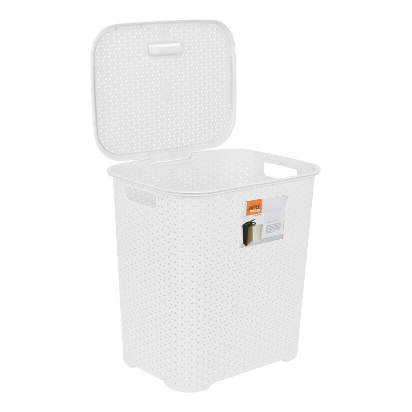 BH | 60L - Plastic Laundry Basket With Lid| White | Large | Knitted/Rattan Style | With Lid | Durable, Lightweight | Clothes Washing Bin Basket Hamper for Bathroom Bedroom (Pack of 1) - By BEST HOUSE
