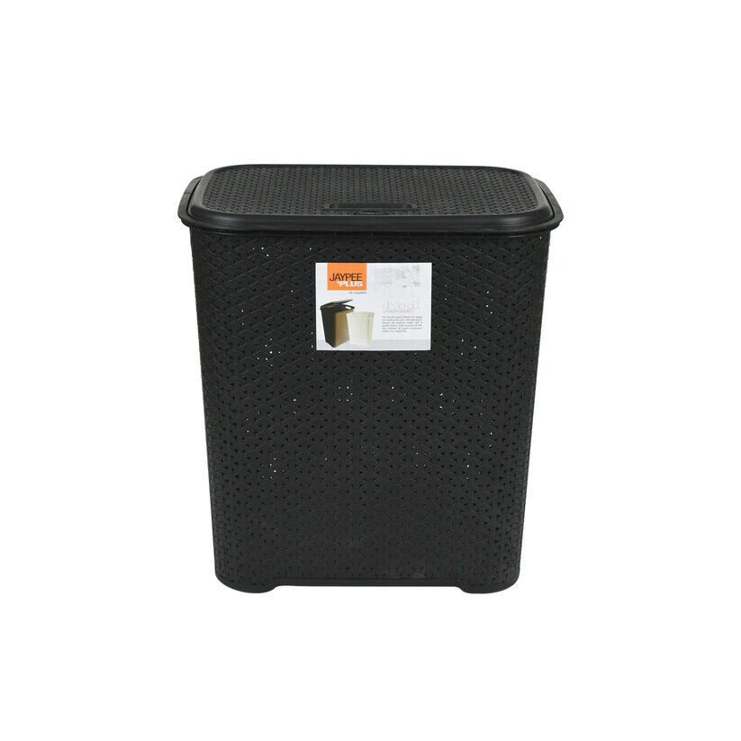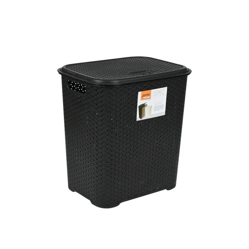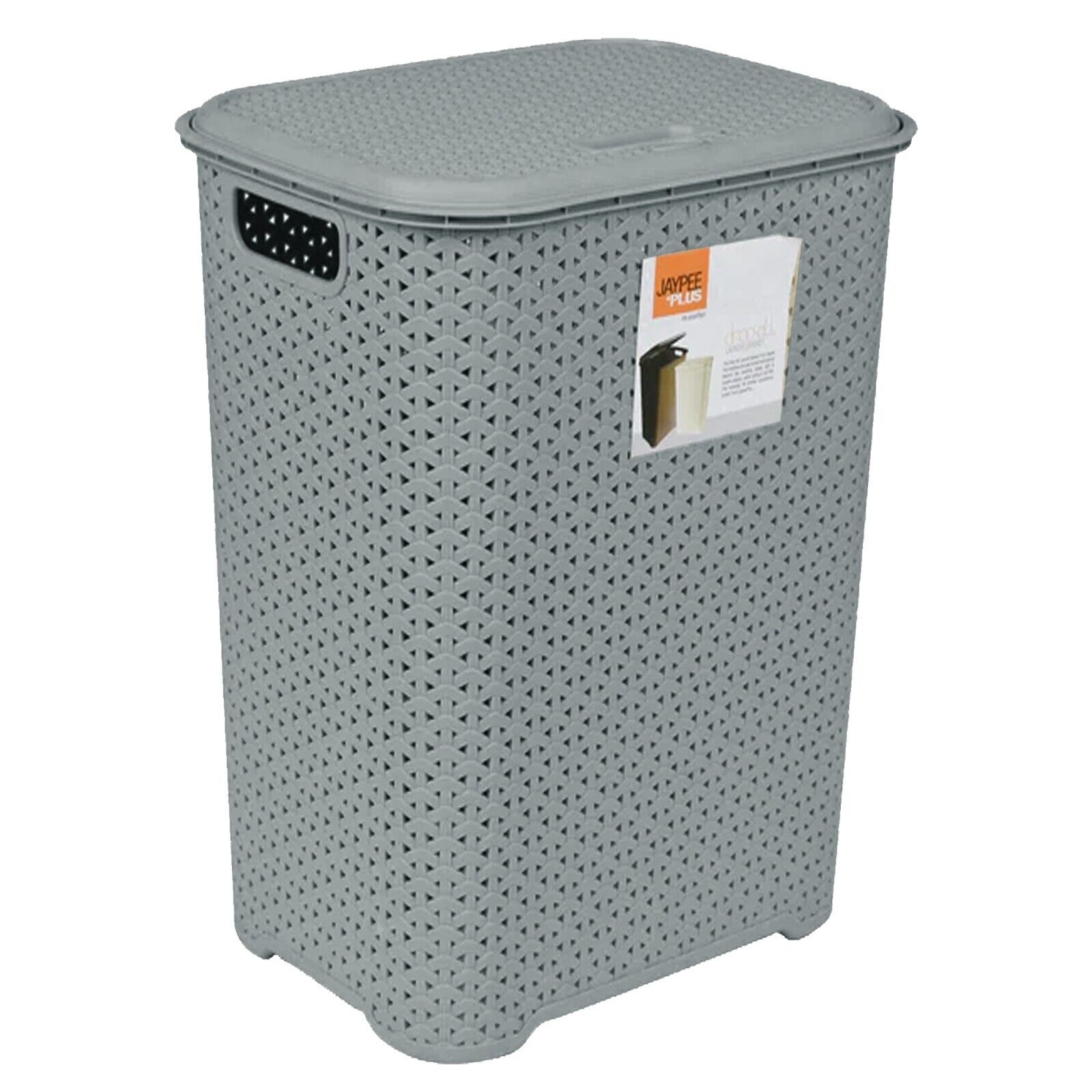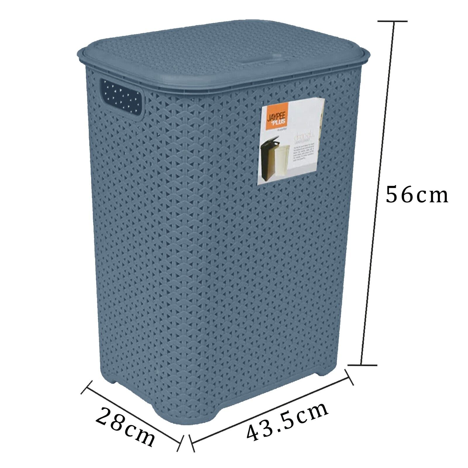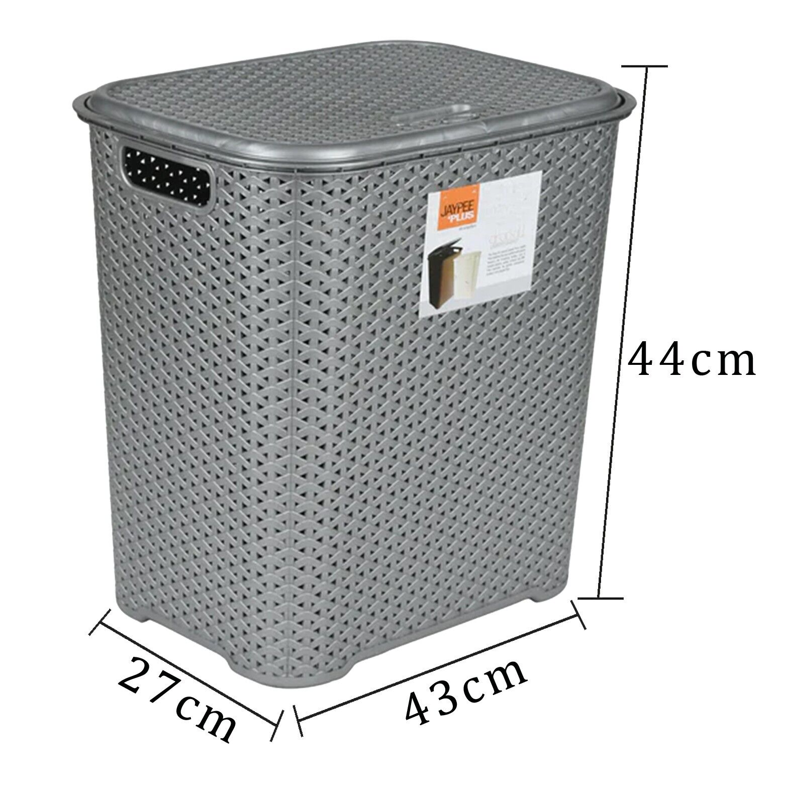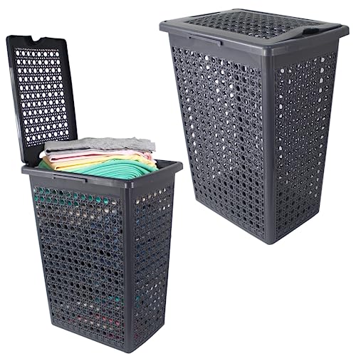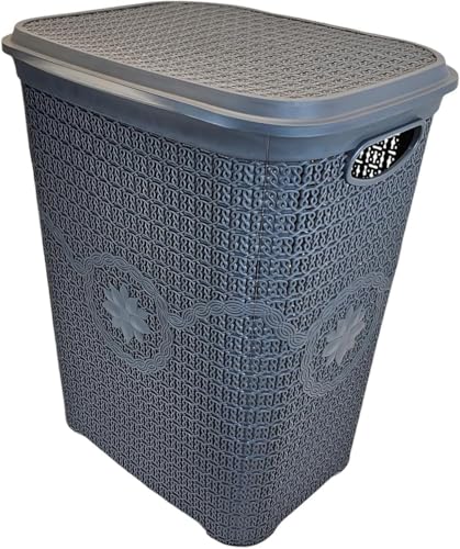 Best House | 65L Laundry Basket with Lid | GRAY | 65 Litres | Large | Plastic Hamper | Knitted/Rattan Style | Clothes Storage Washing Bin Basket Hamper for Bathroom Bedroom (Pack of 1)