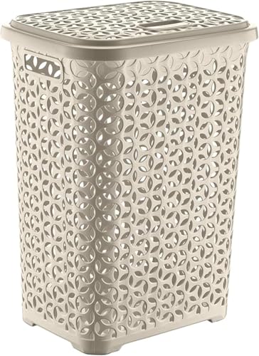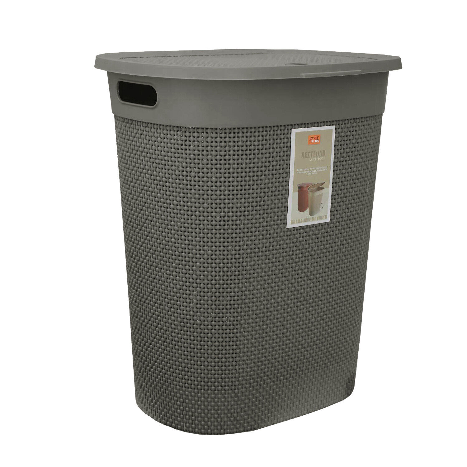 Curver 55L Laundry Hamper Rattan Style Plastic Basket with Lid & Handles Grey