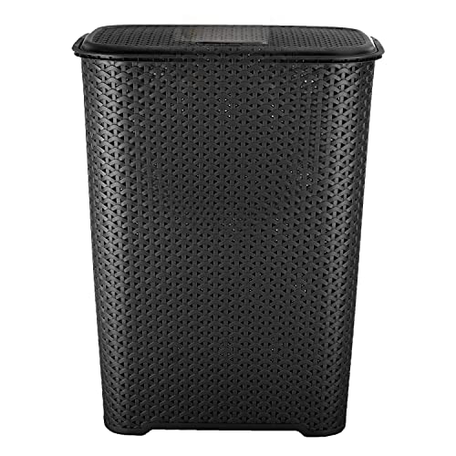 Mind Reader 60L Slim Laundry Hamper, Clothes Basket, Lid, Wicker Design, Plastic, 17.65"L x 13.75"W x 24.15"H, Black