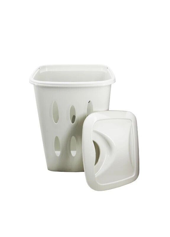 Drop All 45L Small Plastic WHITE Laundry Basket with Lid Washing Clothes Hamper